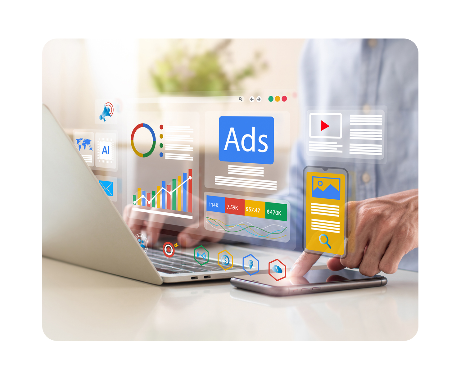 お客様の Microsoft 広告アカウントを当社の MCC と強力な無料最適化ソフトウェアにリンクします。これにより、Microsoft と Google のすべてのキャンペーンから最大限の ROI を得ることができます。